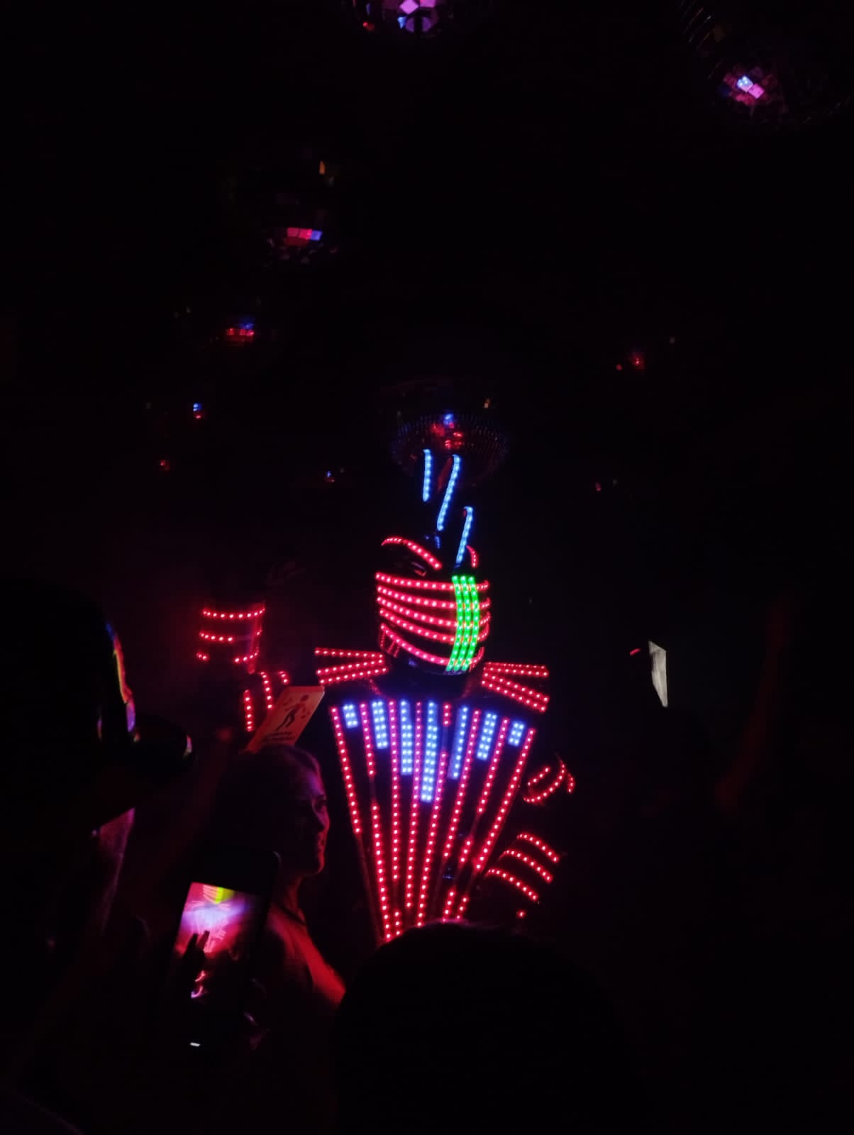Te proponemos vivir un momento único en tu evento junto a tus invitados con un impactante show luminoso que incluye presencia robotica en gran dimensión. El Robot baila e interactua en la pista con los invitados.